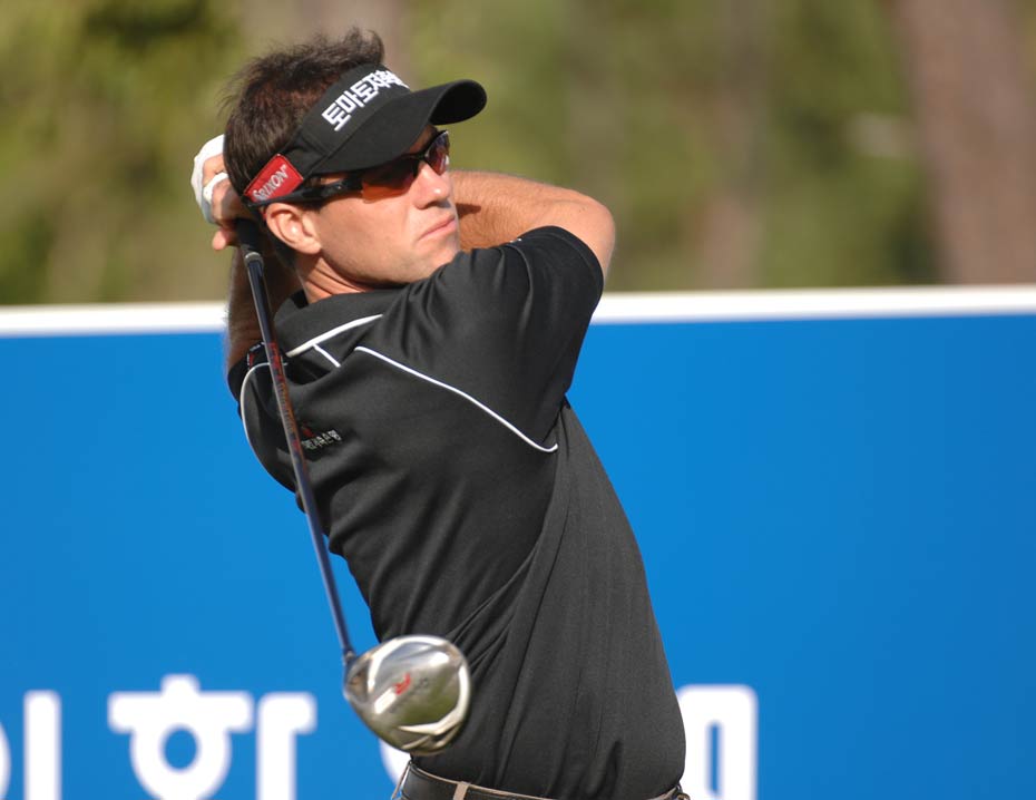 2009“韓國(guó)KEB銀行”中韓職業(yè)高爾夫球巡回賽韓國(guó)站于今天在韓國(guó)OSTAR高爾夫球俱樂(lè)部正式開(kāi)桿,有47名球員代表中國(guó)參賽。圖為選手們上場(chǎng)第一天,揮桿開(kāi)打的場(chǎng)面。