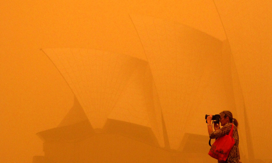 23日,包括悉尼在內(nèi)的澳大利亞東部地區(qū)出現(xiàn)沙塵暴天氣,當(dāng)?shù)亟煌ㄒ虼耸艿接绊憽D片來源:中國新聞網(wǎng)