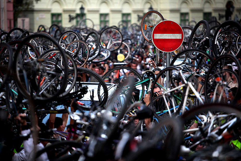 22日是世界無車日,在布達(dá)佩斯的市政廳外,人們高舉自行車,參加在這里舉行的“單車臨界點(diǎn)”集會(huì)。這場活動(dòng)旨在推廣更環(huán)保的交通方式。圖片來源:中國新聞網(wǎng)