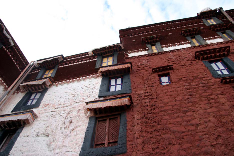 紅宮主要是達(dá)賴?yán)锏撵`塔殿和各類佛殿。圖為白紅和紅宮的臨界。