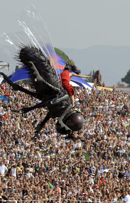 9月27日,法國馬賽趣味飛行器大賽舉行。比賽規(guī)則簡單,誰能在落水之前飛得更遠(yuǎn)誰就是冠軍,但參賽選手絞盡腦汁,把自己的飛行器扮成各種古怪摸樣。圖片來源:中國新聞網(wǎng)