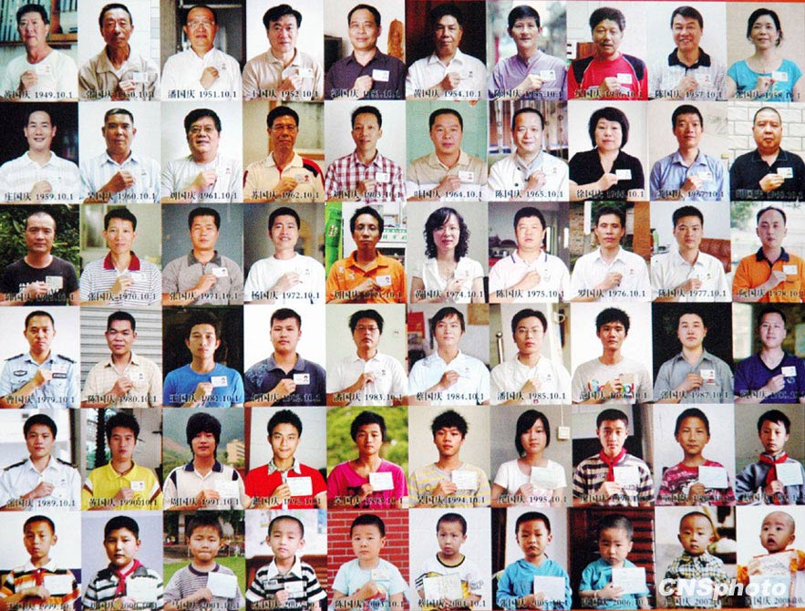 9月27日,“見證祖國60歲 我的名字叫國慶”攝影個(gè)展在福州舉行。為了紀(jì)念中華人民共和國成立60周年,福建職業(yè)攝影師阮曉榕歷時(shí)四個(gè)多月,歷經(jīng)8000余公里行程,尋訪了近百人,最終成功拍攝了從1949年到2008年10月1日出生、名字叫“國慶”的60個(gè)人。 中新社發(fā) 張 斌 攝