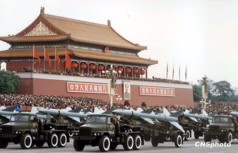 圖為1999年國慶閱兵中的地空導(dǎo)彈方隊。中新社發(fā)