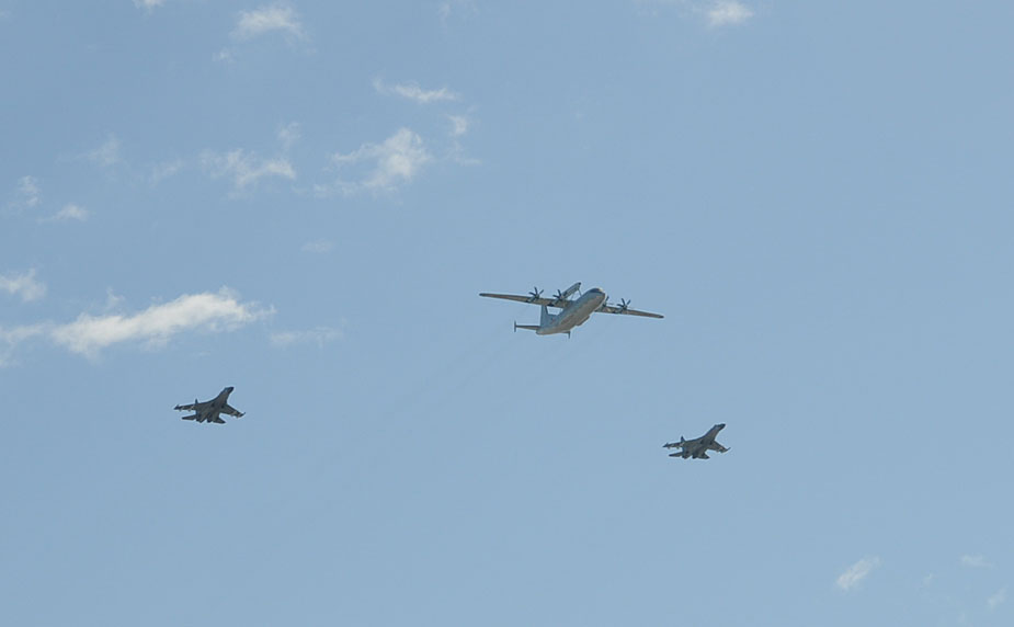 2009年10月1日,中華人民共和國成立60周年慶祝大會在北京天安門廣場舉行。圖為預(yù)警機梯隊通過天安門廣場上空。中新網(wǎng)記者 攝