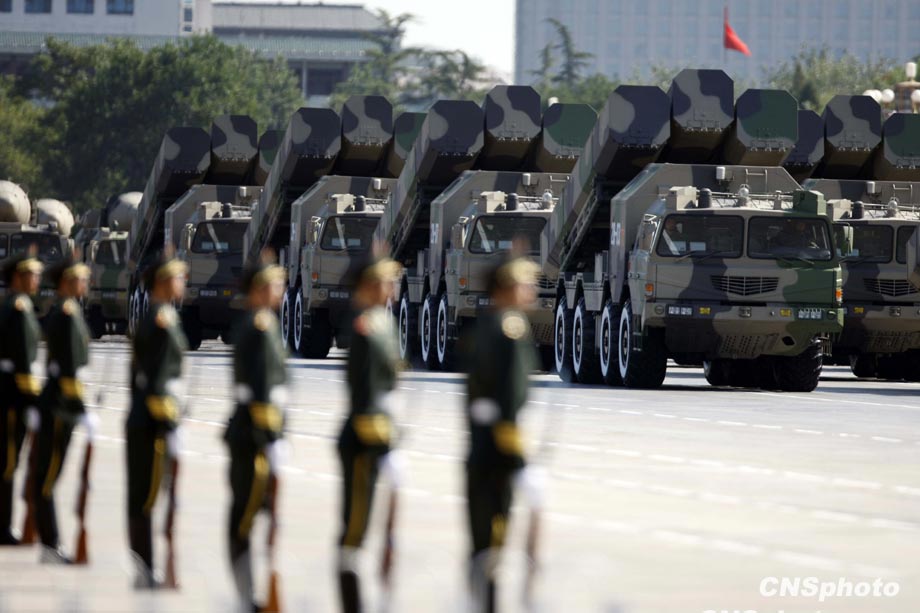 國(guó)慶60周年閱兵10月1日上午在天安門(mén)廣場(chǎng)成功舉行。由人民解放軍、武裝警察部隊(duì)和民兵預(yù)備役部隊(duì)8000余名官兵組成的受閱方陣接受檢閱。中新社發(fā) 盛佳鵬 攝