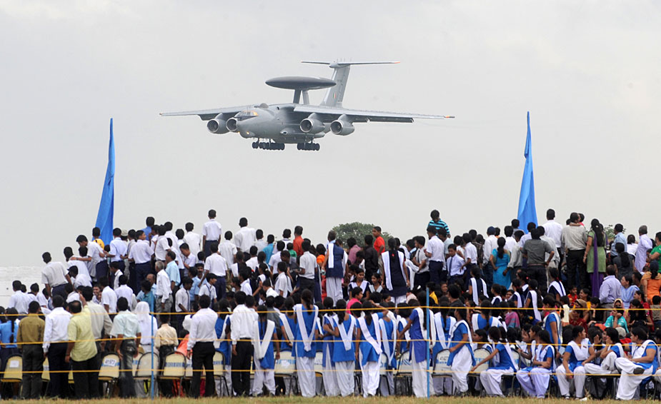 10月6日,印度空軍在新德里郊區(qū)的加濟阿巴德地區(qū)進行了精彩的飛行表演。這次飛行表演是為了迎接印度空軍建軍77周年慶典舉行的彩排式。圖片來源:中國新聞網(wǎng)