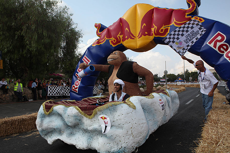 50輛“肥皂盒車”10月7日參加了耶路撒冷舉行的“肥皂盒車”趣味競賽。賽道設(shè)置在市中心一條大街的一段斜坡上,比賽者駕駛各種千奇百怪的賽車從起點一路滑下。圖片來源:中國新聞網(wǎng)