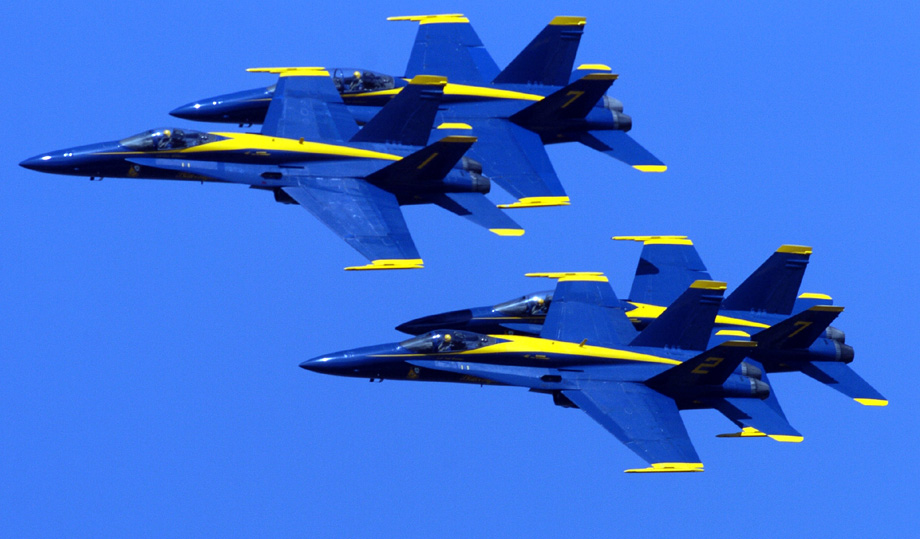 2009年10月8日,美軍飛機(jī)在舊金山灣上空進(jìn)行飛行演練。一年一度的舊金山艦隊(duì)周將于10月10日開幕,屆時(shí)會(huì)有船艦游行和飛行表演等活動(dòng)。 來源:中國(guó)新聞網(wǎng)
