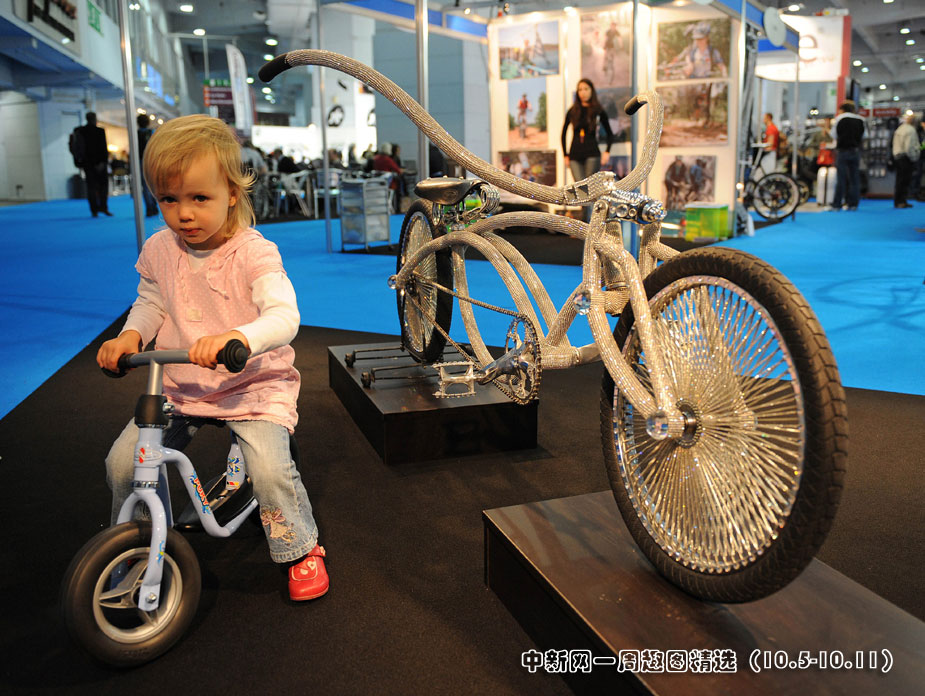 10月8日,2009自行車展在倫敦市中心開幕,超過11萬顆施華洛世奇水晶覆蓋的自行車成為有史以來最昂貴的自行車,該車由英國(guó)人本·威爾遜設(shè)計(jì)制造。來源:中國(guó)新聞網(wǎng)