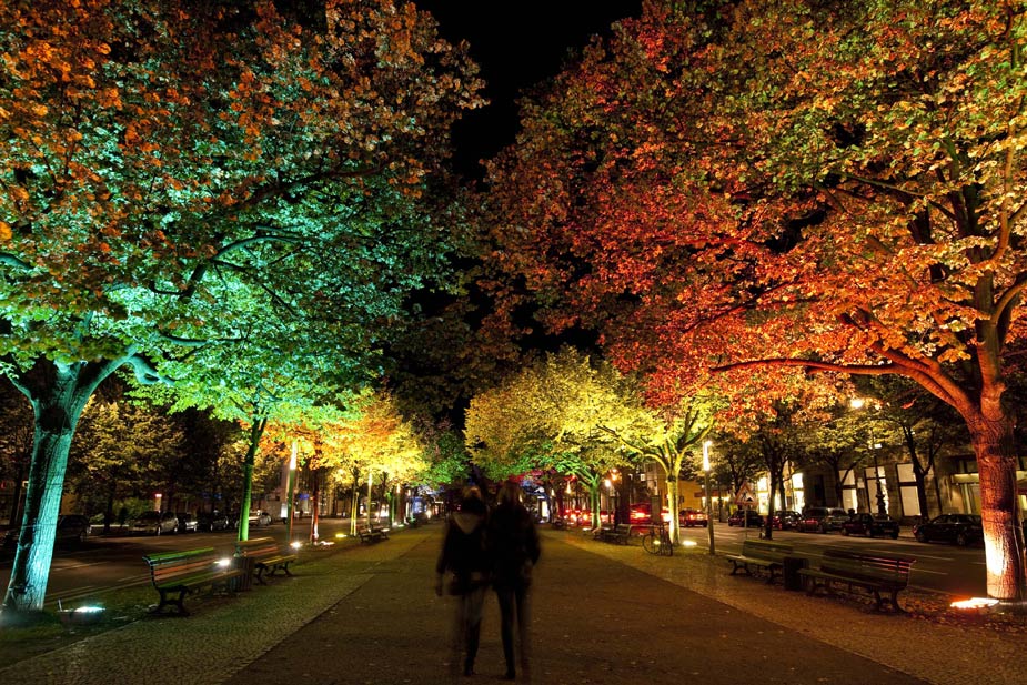 10月14日德國柏林將迎來一年一度的“燈節(jié)”。13日晚在德國首都柏林,著名的林蔭大道“菩提樹下大街”在“燈節(jié)”預演中被五彩燈飾照亮。