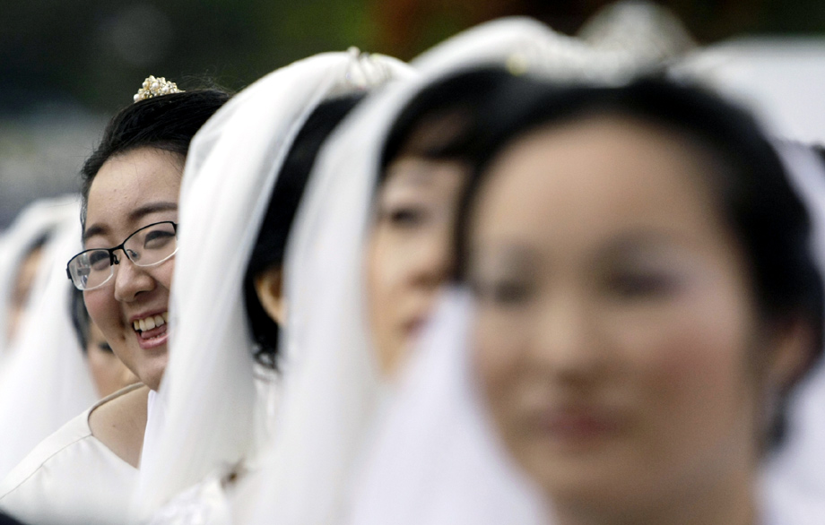 周三(10月14日),來自世界各地約4萬人在韓國(guó)漢城以南的日月潭大學(xué)參加集體婚禮,并成為韓國(guó)10年來規(guī)模最大的集體婚禮。圖片來源:中國(guó)新聞網(wǎng)