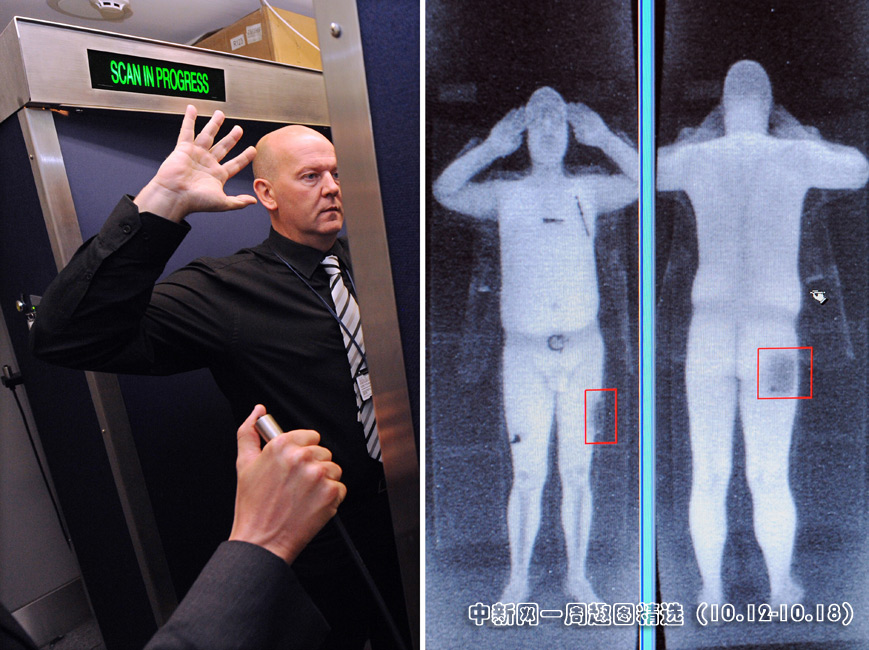 10月13日,英國曼徹斯特機(jī)場推出了不用脫衣服的X射線“裸體掃描”安檢設(shè)備。圖片來源:中國新聞網(wǎng)