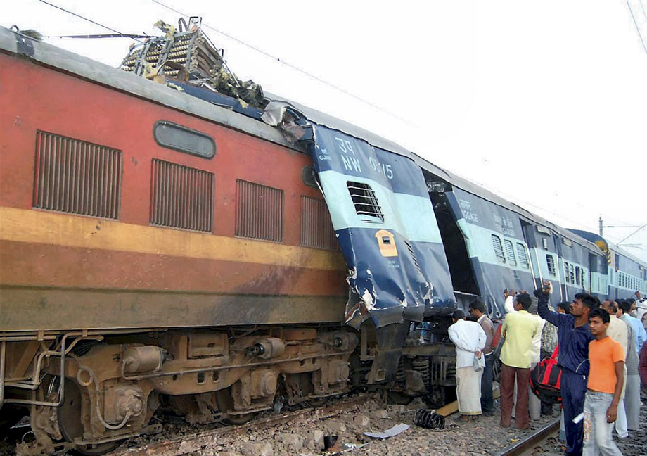印度北方邦21日凌晨發(fā)生兩列火車相撞事故, 一輛來自西南部果阿的快運(yùn)列車在馬圖拉附近與一列來自西部拉賈斯坦邦梅瓦爾的快運(yùn)列車相撞,造成15人死亡。圖為事故現(xiàn)場。來源:中國新聞網(wǎng)