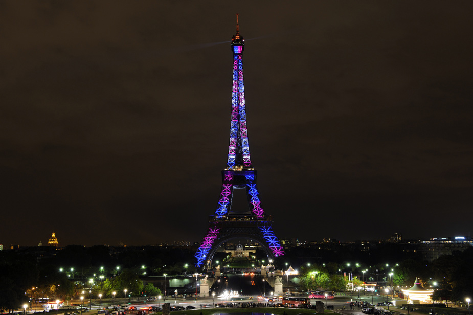 10月22日,法國首都巴黎埃菲爾鐵塔亮起絢麗的燈光,慶祝建成120周年。圖片來源:中國新聞網(wǎng)