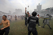 23日,推進(jìn)“平安重慶”建設(shè)突發(fā)事件應(yīng)急演練在該市渝中區(qū)大田灣體育場(chǎng)舉行,重慶各警種突精銳力量重裝登場(chǎng),將各類事件一一化解。