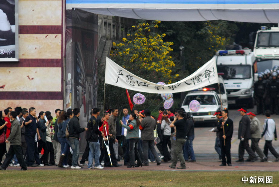 在演練現(xiàn)場(chǎng),重慶發(fā)生“生化襲擊事件”,偵破工作正在進(jìn)行時(shí),受害人家屬以賠償和嚴(yán)懲兇手為由進(jìn)行非法游行,堵塞交通和大型商場(chǎng)通道,擾亂交通秩序和正常經(jīng)營(yíng),引來大量群眾圍觀。 郝飛 攝