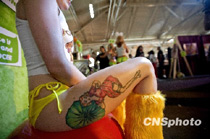 2009年10月23日,澳大利亞悉尼,來(lái)自紐約的全男班惹笑芭蕾舞團(tuán)The Trocks在噴泉邊起舞。高超的足尖技巧,優(yōu)美的芭蕾舞姿,加上怪異的動(dòng)作滑稽的表情,這些美國(guó)男子芭蕾演員們用一種另類(lèi)的表現(xiàn)力顛覆了人們心中優(yōu)雅高貴的印象,讓觀(guān)眾欣賞傳統(tǒng)以外的男扮女裝芭蕾舞表演。