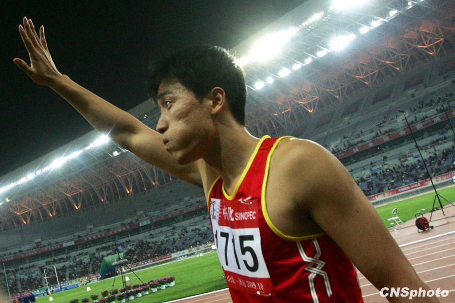 10月24日晚,全運(yùn)會110米欄預(yù)賽在濟(jì)南奧體中心舉行,“飛人”劉翔以13秒75成績輕松晉級決賽。來源:中國新聞網(wǎng)