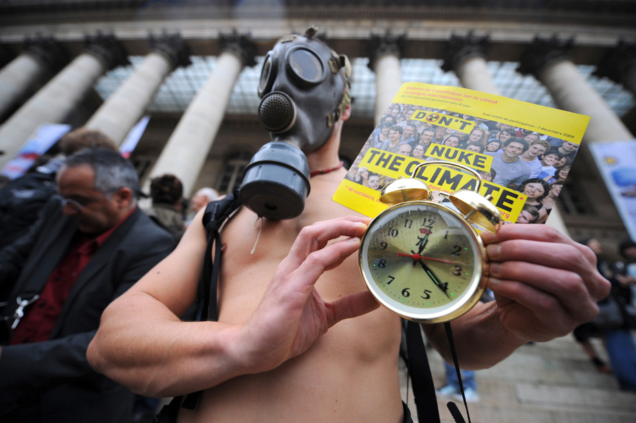 2009年10月24日,當日是350全球應對氣候變化行動日,世界各地的民眾紛紛用自己的方式來表示對全球氣候變化的關(guān)注和擔憂。圖為法國民眾組織活動。
