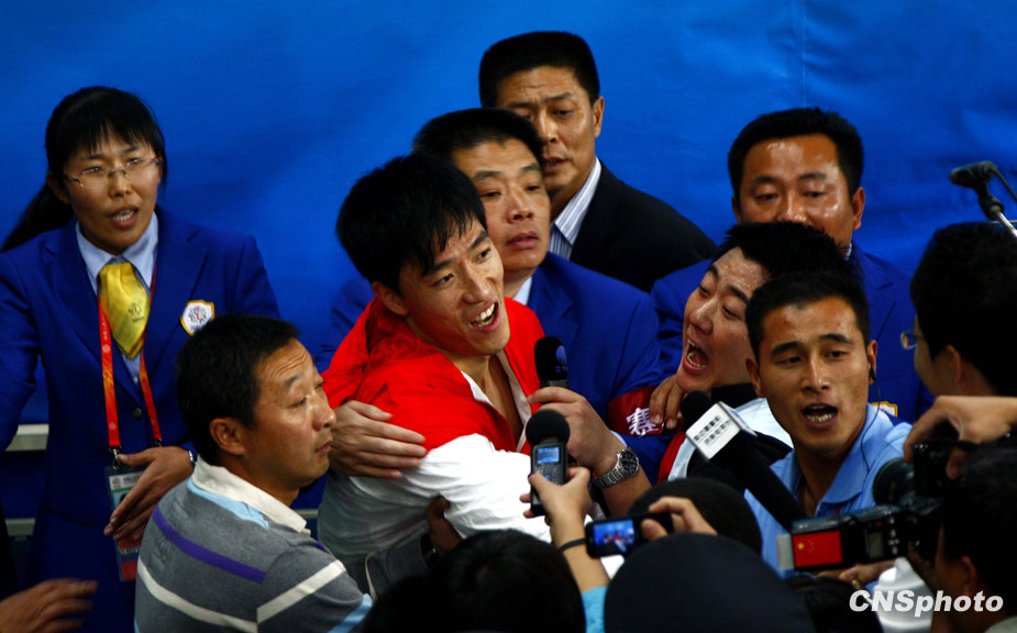 10月25日,在全運(yùn)會田徑男子110米欄決賽中,上海代表團(tuán)選手、“中國飛人”劉翔以13秒34的成績勇奪冠軍,同時(shí)也成就了其全運(yùn)會該項(xiàng)目三連冠的偉業(yè)。