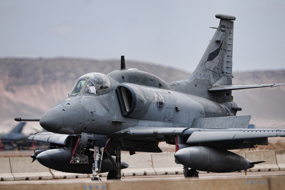 當(dāng)?shù)貢r(shí)間10月26日,美國(guó)、法國(guó)、阿根廷、巴西、智利等國(guó)的空軍在智利首都圣地亞哥以北的安托法加斯塔舉行了一場(chǎng)聯(lián)合空中軍事演習(xí)。通過模擬維和任務(wù),交流作戰(zhàn)技術(shù)和經(jīng)驗(yàn)。圖為阿根廷空軍的戰(zhàn)機(jī)。