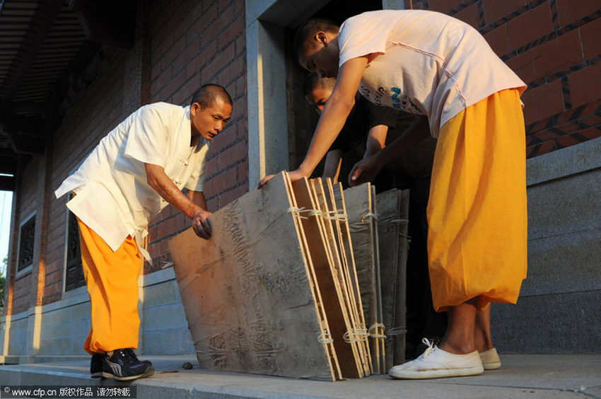 泉州南少林武僧釋理亮借助三合板上演少林絕技“水上漂”,在水面“飛奔”了18米遠(yuǎn)。那么,釋理亮的“水上漂”功夫是如何練成的呢?由于訓(xùn)練刻苦,三合板經(jīng)常被踏出洞來,釋理亮不得不在每次訓(xùn)練前認(rèn)真檢查三合板質(zhì)量。林朝陽/CFP