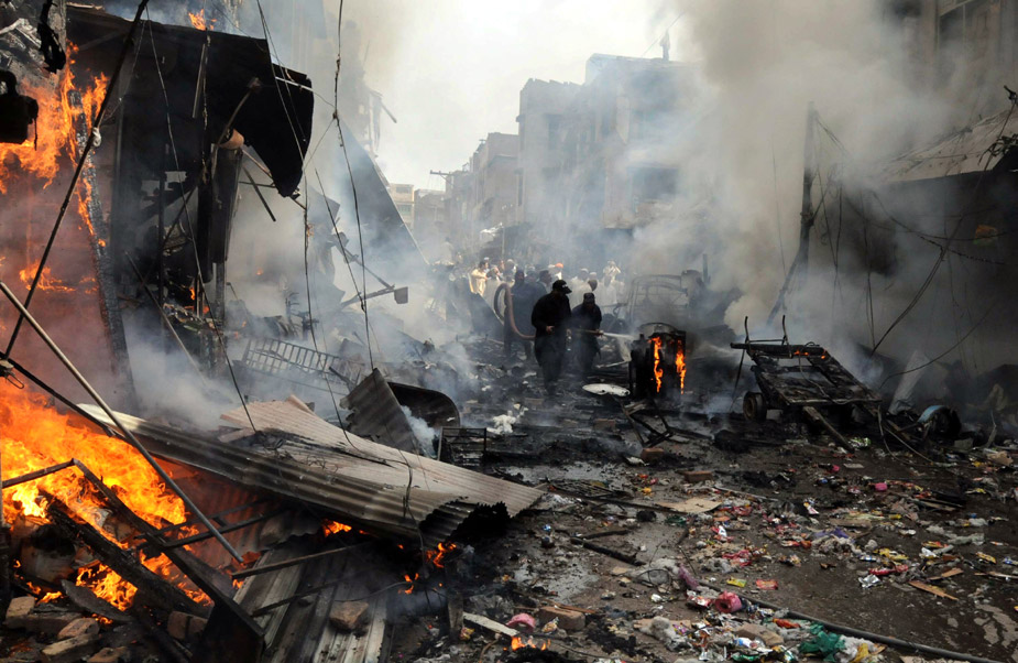 10月28日,巴基斯坦西北部城市白沙瓦一個人口密集的集市遭汽車炸彈襲擊。圖片來源:中國新聞網(wǎng)