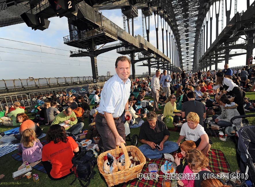 澳大利亞六千名群眾25日早上齊集舉世聞名的悉尼港大橋,坐在綠油油的草地上享受早餐。這是迄今在大橋上舉行的規(guī)模最大的一次集體早餐。參加者一邊呼吸新鮮空氣,欣賞美麗風景,一邊品嘗美食。>>點擊觀看詳細內(nèi)容