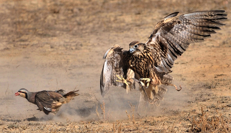 10月30日,在吉爾吉斯斯坦Bokonbayevo傳統(tǒng)的狩獵節(jié)上,一只捕獵鳥在追獵物。圖片來源:中國新聞網(wǎng)
