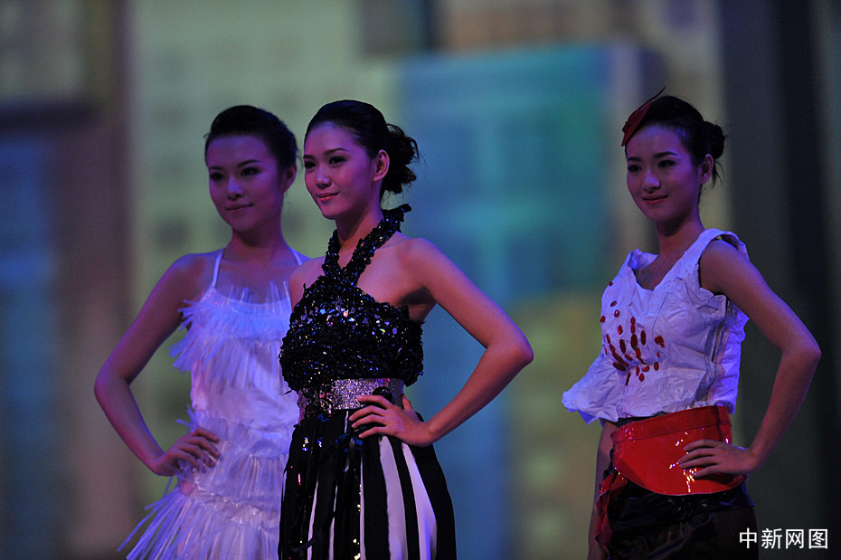 10月31日晚,“2009中華小姐環(huán)球大賽”總決賽上,12名入圍總決賽的佳麗身著各式服裝展現(xiàn)曼妙身姿,此外大賽還設計了一套“廢品服裝”呼吁環(huán)境保護。中新網(wǎng)記者 金碩 攝