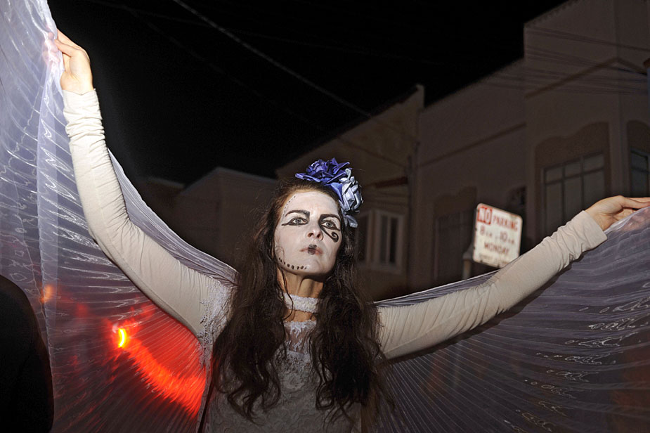 11月2日,美國舊金山居民扮成鬼怪模樣慶祝“亡靈節(jié)”。“亡靈節(jié)”是拉美地區(qū)的傳統(tǒng)節(jié)日,類似于中國的清明節(jié)。來源:中國新聞網(wǎng)