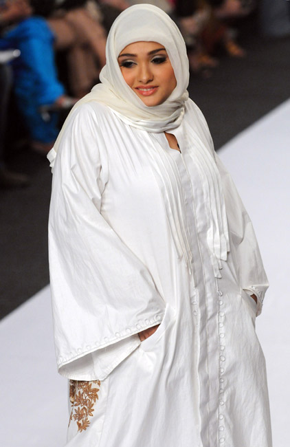 11月5日,巴基斯坦第一屆時(shí)裝周在卡拉奇拉開(kāi)帷幕。美女模特們身著裸露雙肩和肚臍的非伊斯蘭傳統(tǒng)服裝在T臺(tái)上走秀。