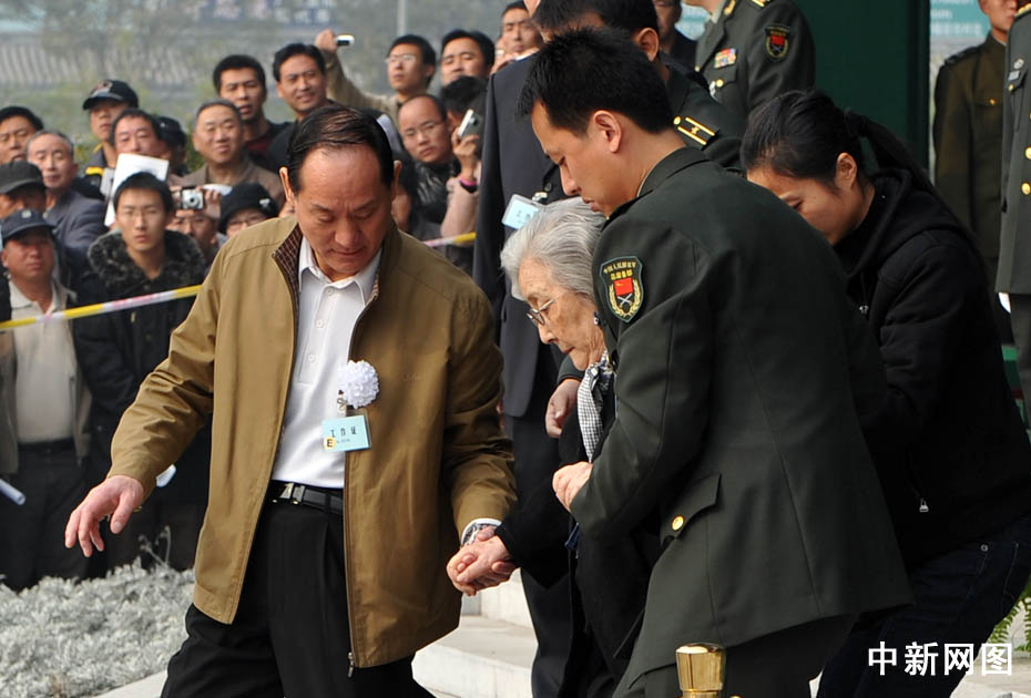 11月6日,“中國航天之父”錢學森的追悼會在北京八寶山舉行。圖為錢學森夫人蔣英送別丈夫。中新網(wǎng)記者 金碩 攝