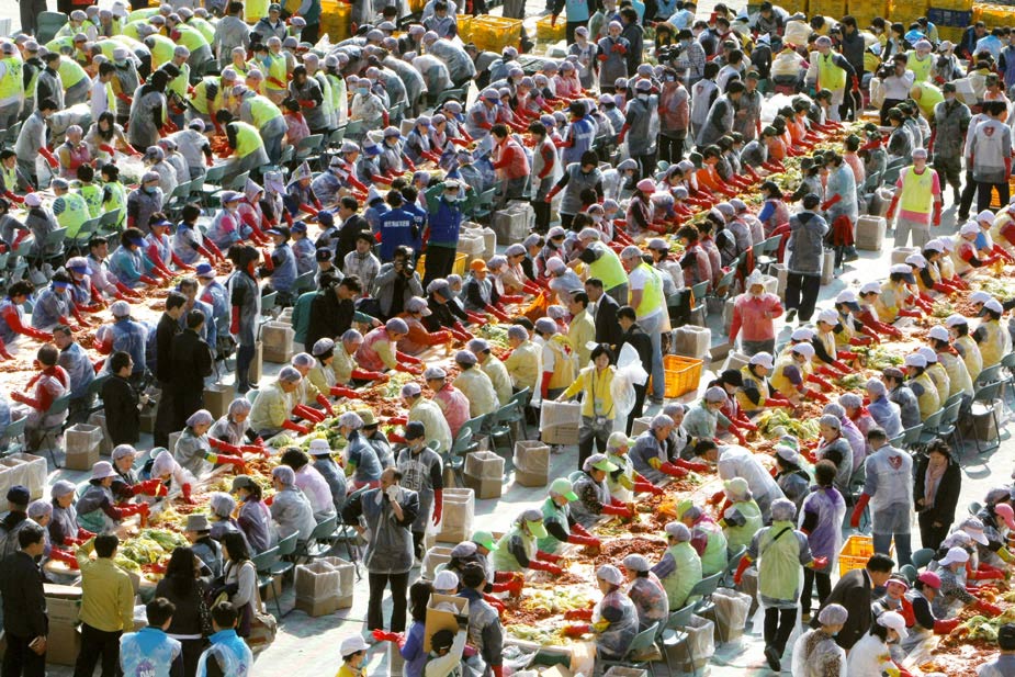 11月9日,約2700名韓國志愿者在首爾一所學校的操場上制作泡菜。
