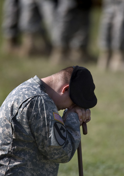 2009年11月10日,在美國(guó)得克薩斯州胡德堡陸軍基地,士兵在悼念儀式上哭泣。當(dāng)日,美國(guó)德克薩斯州胡德堡陸軍基地舉行儀式悼念槍擊案遇難者。 圖片來(lái)源:中國(guó)新聞網(wǎng)