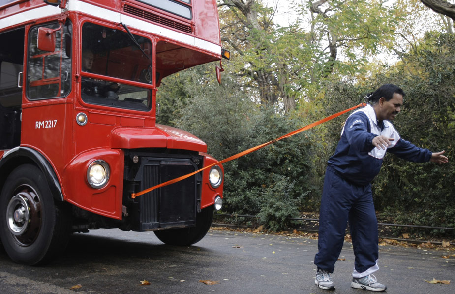 11月12日,一位名叫曼吉特·辛格的牛人在倫敦一個(gè)公園內(nèi)以21.2米的成績(jī)打破了用頭發(fā)拉動(dòng)雙層巴士最遠(yuǎn)距離的吉尼斯世界紀(jì)錄。