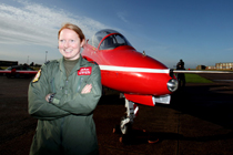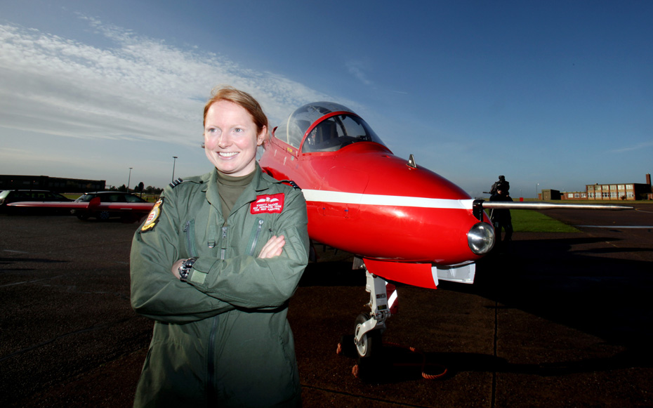 11月12日,英國紅箭特技飛行表演隊迎來了第一位女性飛行員中尉基絲·摩爾,她將與其他成員一道駕駛紅色噴氣機進行空軍飛行表演。圖片來源:中國新聞網