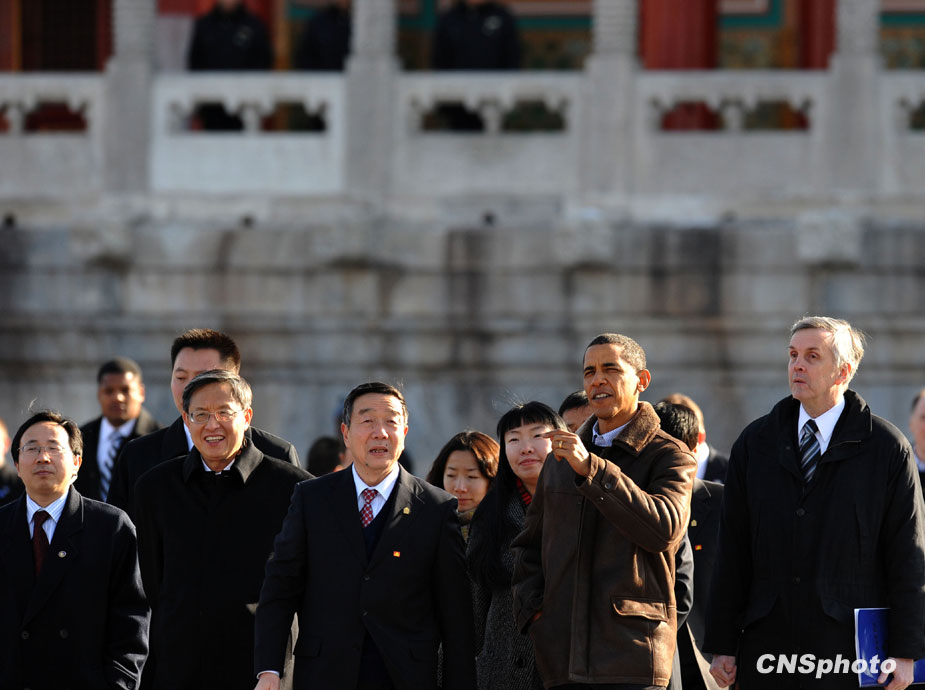 11月17日,正在中國進行國事訪問的美國總統(tǒng)奧巴馬一行參觀北京故宮。圖片來源:中國新聞網(wǎng)