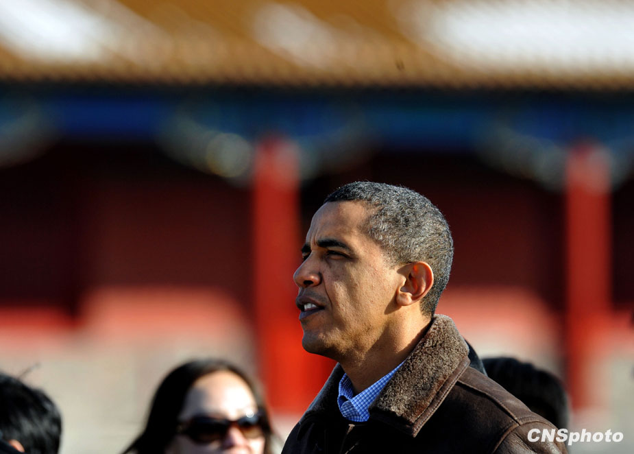 11月17日,正在中國(guó)進(jìn)行國(guó)事訪問(wèn)的美國(guó)總統(tǒng)奧巴馬一行參觀北京故宮。圖片來(lái)源:中國(guó)新聞網(wǎng)