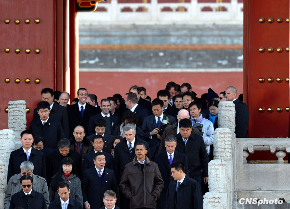11月17日,正在中國進行國事訪問的美國總統(tǒng)奧巴馬一行參觀北京故宮。中新社發(fā) 廖攀 攝