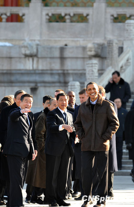 11月17日,正在中國(guó)進(jìn)行國(guó)事訪問的美國(guó)總統(tǒng)奧巴馬一行參觀北京故宮。圖片來源:中國(guó)新聞網(wǎng)