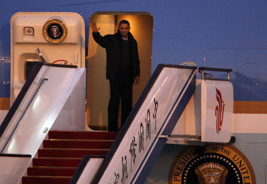 11月18日,北京首都國(guó)際機(jī)場(chǎng),美國(guó)總統(tǒng)奧巴馬結(jié)束訪華行程乘坐專機(jī)離開北京。