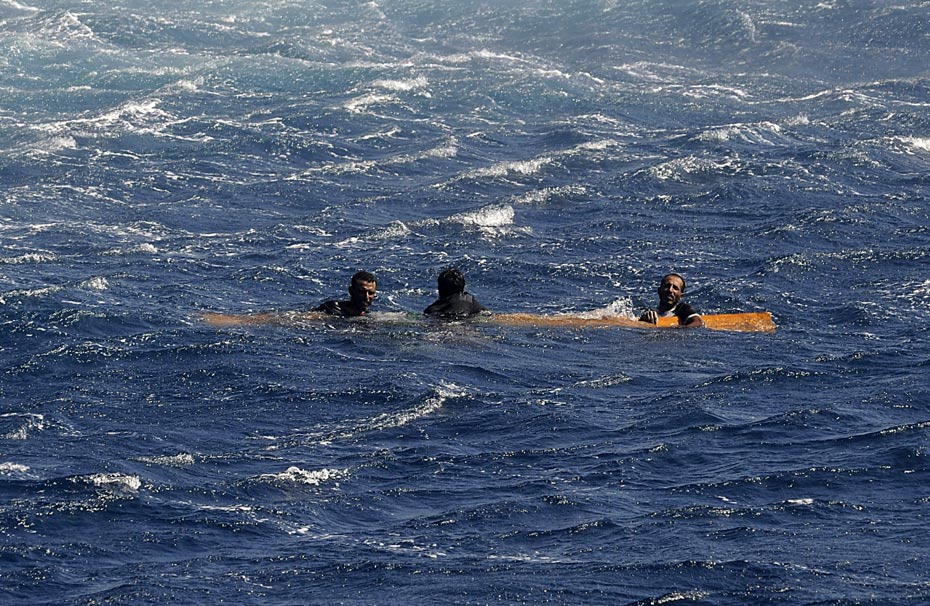 11月17日,亞丁灣,3名漁民抱著木板在海面上漂流3天后獲救。據(jù)悉,他們遭遇了十幾名名疑似海盜的劫持,海盜們讓其選擇或跳海逃生或被殺死。圖片來源:中國新聞網(wǎng)