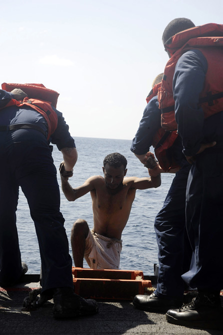 11月17日,亞丁灣,3名漁民抱著木板在海面上漂流3天后獲救。據(jù)悉,他們?cè)庥隽耸畮酌伤坪1I的劫持,海盜們讓其選擇或跳海逃生或被殺死。來(lái)源:中國(guó)新聞網(wǎng)