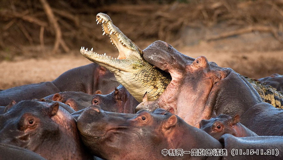 一條鱷魚悄悄混入了正在河里洗澡的河馬中,它很快就被敏感的母河馬發(fā)現(xiàn)。憤怒的河馬們立刻對它發(fā)起了猛烈地攻擊,這條冒失的鱷魚很快死于非命。圖片來源:中國新聞網(wǎng)>>點擊觀看詳細內(nèi)容