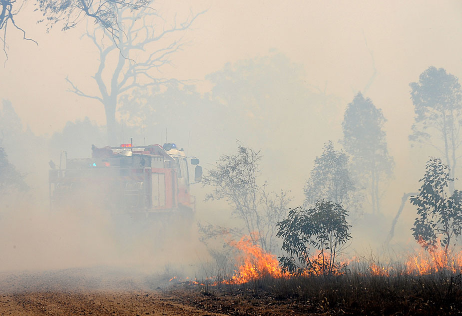 11月22日,澳大利亞東部悉尼西北部地區(qū)因高溫發(fā)生森林大火,當?shù)鼐用癖黄瘸冯x。圖片來源:中國新聞網(wǎng)