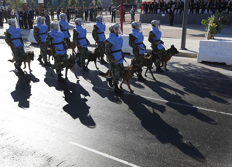 11月22日,黎巴嫩軍隊在貝魯特市中心舉行閱兵式,慶祝黎巴嫩獨立66周年。圖片來源:中國新聞網(wǎng)
