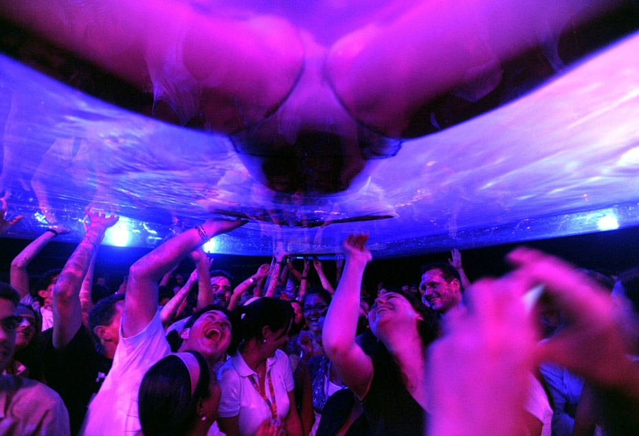 近日,阿根廷演員在加拉加斯舉行了一場名為“蠻力”水下演出,光怪陸離的燈光配合水中的演出吸引了大量觀眾到場觀看。圖片來源:中國新聞網(wǎng)