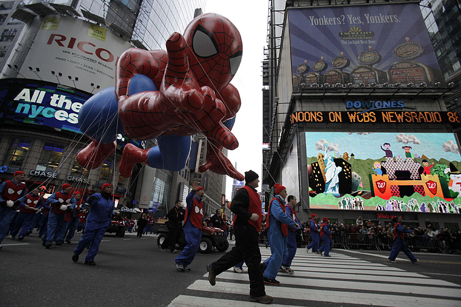 11月26日,2009梅西感恩節(jié)花車與氣球大游行在紐約曼哈頓舉行。梅西感恩節(jié)大游行始于1924年,是全美最盛大的感恩節(jié)慶典。圖片來源:中國(guó)新聞網(wǎng)