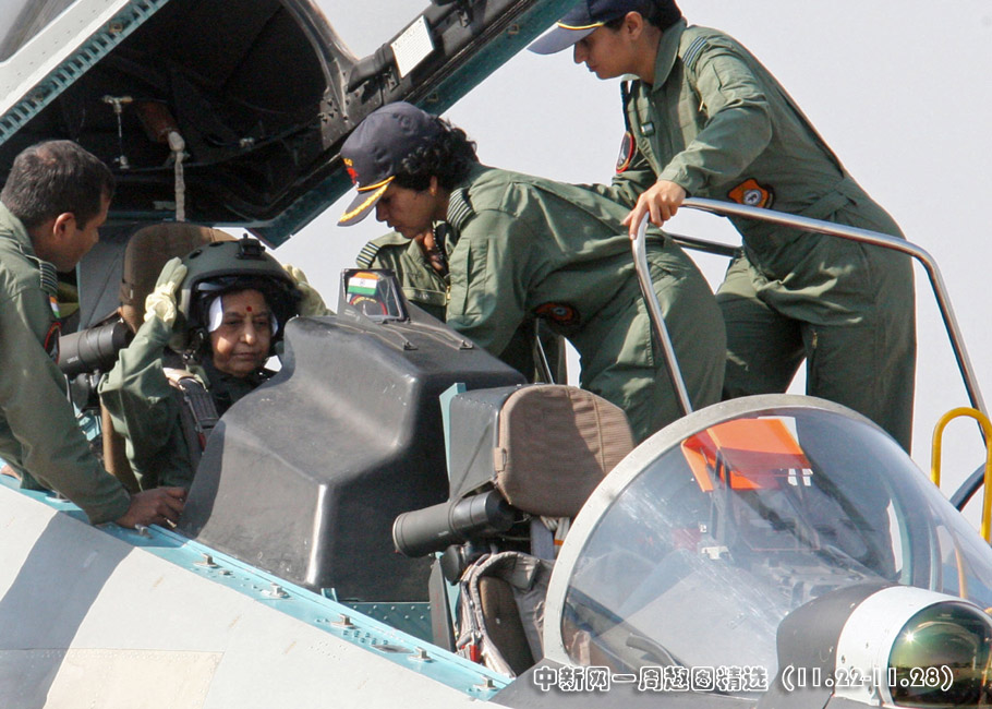 11月25日,74歲的印度女總統(tǒng)帕蒂爾在印度孟買附近的馬哈拉施特拉邦浦那地區(qū)的洛黑岡空軍基地,乘印度最先進的蘇-30戰(zhàn)斗機飛上藍天,這是她首次乘坐戰(zhàn)斗機。圖片來源:中國新聞網(wǎng)>>點擊觀看詳細內(nèi)容